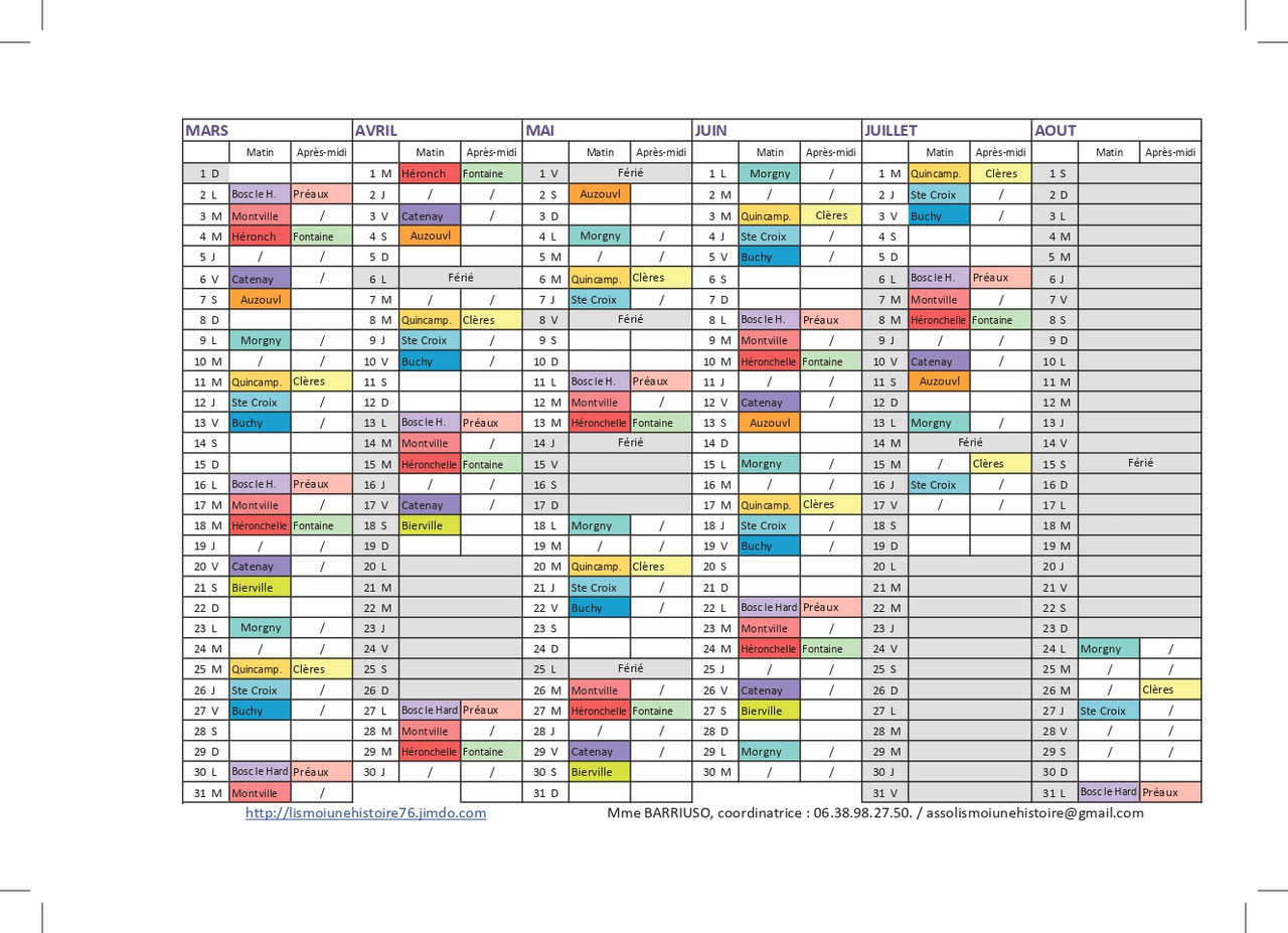 Planning et renseignements disponibles sur le site https://lismoiunehistoire76.jimdofree.com/